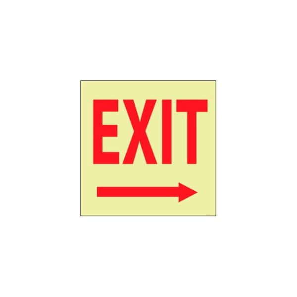 Glow fire safety signs fire safety signs exit/right arrow -rigid plastic glow fire safety signs feature large text and easily understood graphics to increase first glance comprehension. Signs comply with osha & nfpa requirements. Signs do not require mechanical or electrical power source. Provides an illumination duration time of 6+ hours. Meets osha and astm requirements.