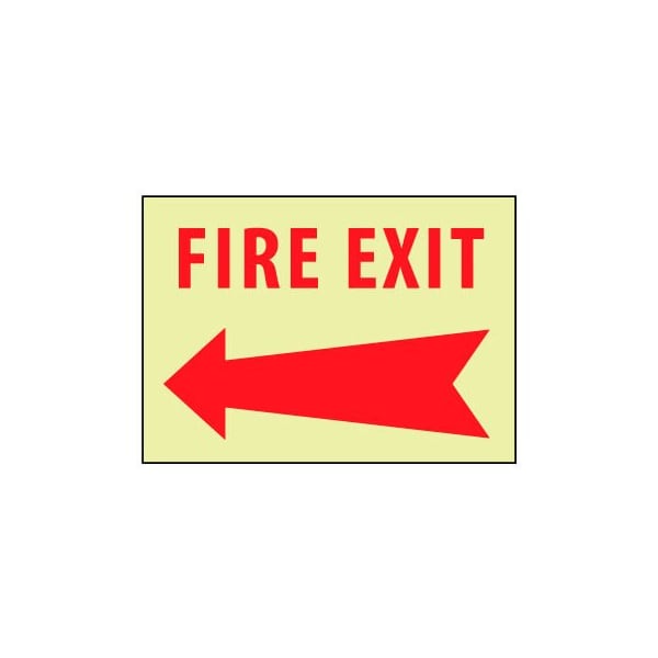Glow fire safety signs fire safety signs fire exit/left arrow - pressure sensitive vinyl glow fire safety signs feature large text and easily understood graphics to increase first glance comprehension. Signs comply with osha & nfpa requirements. Signs do not require mechanical or electrical power source. Provides an illumination duration time of 6+ hours. Meets osha and astm requirements.