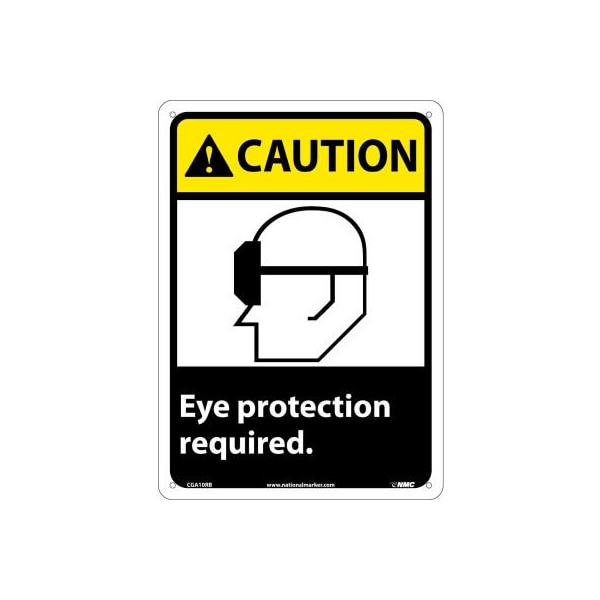 Graphic signs, plastic 10w x 14h, caution eye protection required universally understood graphics for comprehension at a glance. Safety alert triangle and headings indicates the presence of immediate or potentially hazardous situation. Meets new ansi z535 guidelines for standardization. Text on sign:
