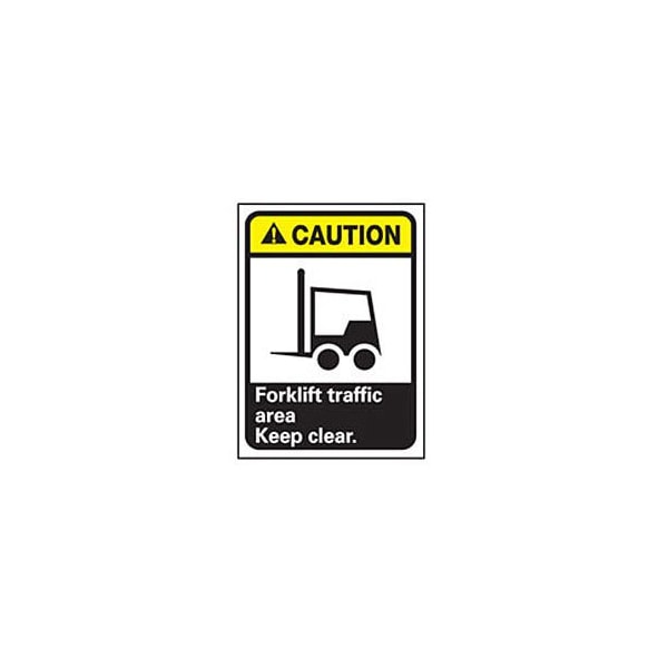 Safety Alert triangle and headings indicates the presence of immediate or potentially hazardous situation. Meets new ANSI Z535 Guidelines for standardization. Text on Sign: CAUTION - FORKLIFT TRAFFIC AREA. KEEP CLEAR.