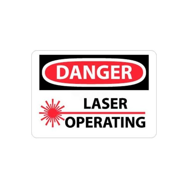 NMC OSHA Sign, Danger Laser Operating, 7in X 10in, White/Red/Black