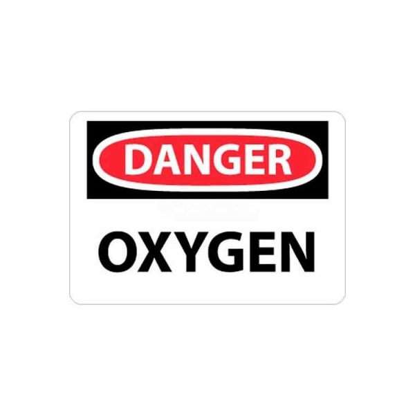 NMC OSHA Sign, Danger Oxygen, 10in X 14in, White/Red/Black