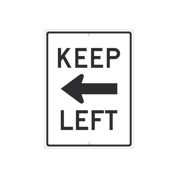 NMC Traffic Sign, Keep Left Arrow Graphic, 24in x 18in, White