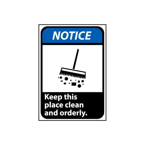 Ansi notice signs keep this place clean and orderly 14 x 10 rigid plastic universally understood graphics provide understanding at a glance. Signs meet new ansi z535 guidelines for standardization. These easy-to-read notification signs feature left justified text for easier comprehension. Safety alert triangle indicates the presence of an immediate or potentially hazardous situation.
