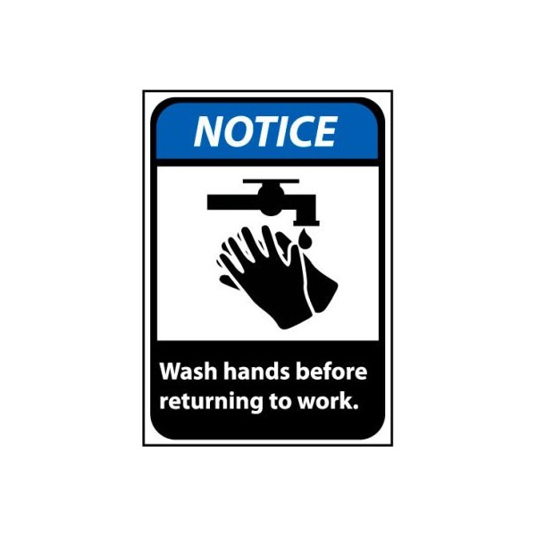 Ansi notice signs wash hands before returning to work 14 x 10 pressure sensitive vinyl universally understood graphics provide understanding at a glance. Signs meet new ansi z535 guidelines for standardization. These easy-to-read notification signs feature left justified text for easier comprehension. Safety alert triangle indicates the presence of an immediate or potentially hazardous situation.