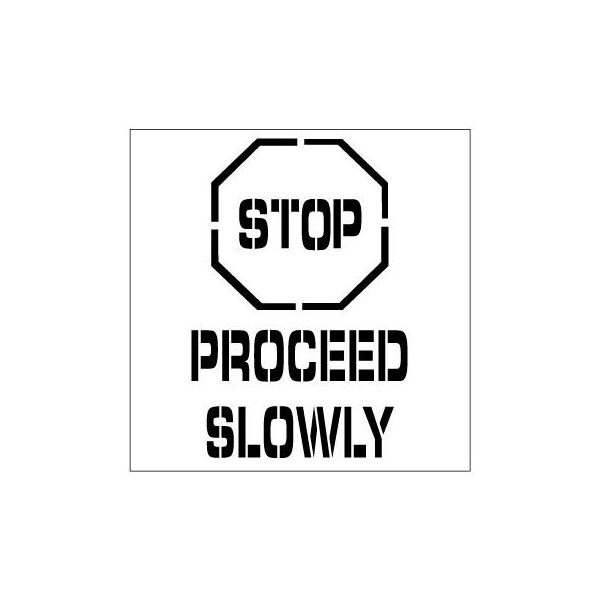 Plant marking stencils stop proceed slowly plant stencils help mark off hazards and warnings for personnel safety. Plant marking stencils help paint a message or symbol over and over on floors and walls. Plant safety stencils are made from 20 x 20 flexible .060 thick polyethylene plastic that withstands repeated use. Stencils are easy-to-clean; simply wipe off dried paint flakes after use.