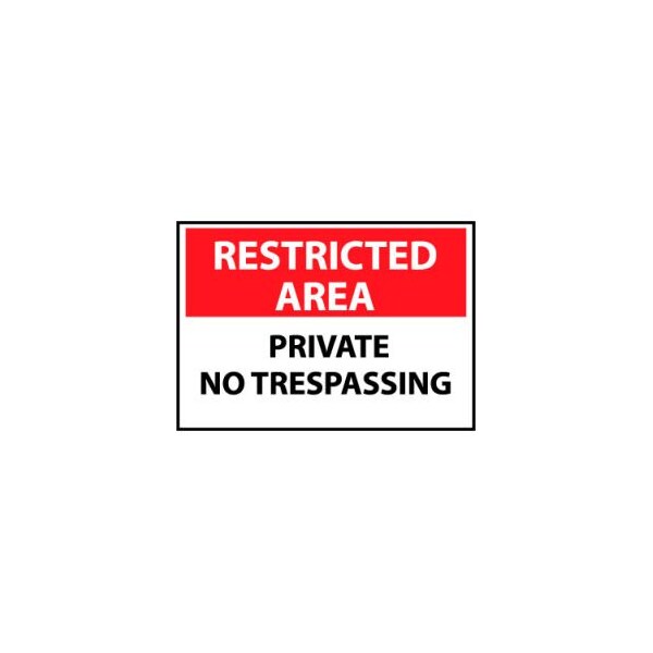Restricted area signs restricted area signs private no tresspassing rigid plastic sign features bright red top bar to attract attention from anyone in the area. Text and graphics are large enough to be seen from a distance. rigid plastic models are supplied with radius corners and pre-drilled holes for mounting. Sign measures 10 x 14