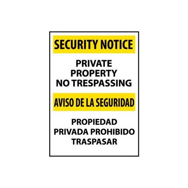Security notice signs security notice signs private property no trespassing bilingual let everyone know the policies within your facility!! this 14 x 20 sign features large text and graphics with a bright yellow bar at the top to attract attention. aluminum signs are made with .40 reinforced baked enamel for long-lasting durability. Corrosion and uv resistant.