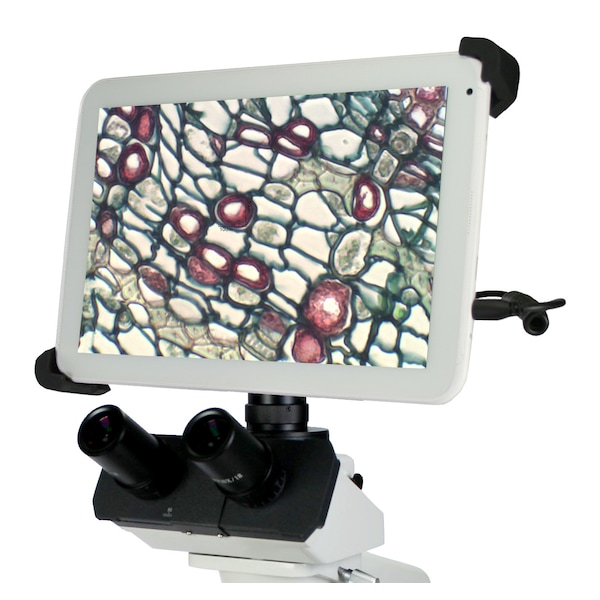 Introducing National Optical's detachable 10in Android based tablet system for trinocular microscopes. Please note: C-mount adapter required.Now supplied with a Moticam X5, images can be transmitted to attached bracket tablet or iOS and Android devices up to 5 each. Use it to share live images with colleagues using WiFi enabled devices or laptops. Connect it to your office network via the RJ45 port and share your images with all connected devices.Tablet includes preloaded Motic app.