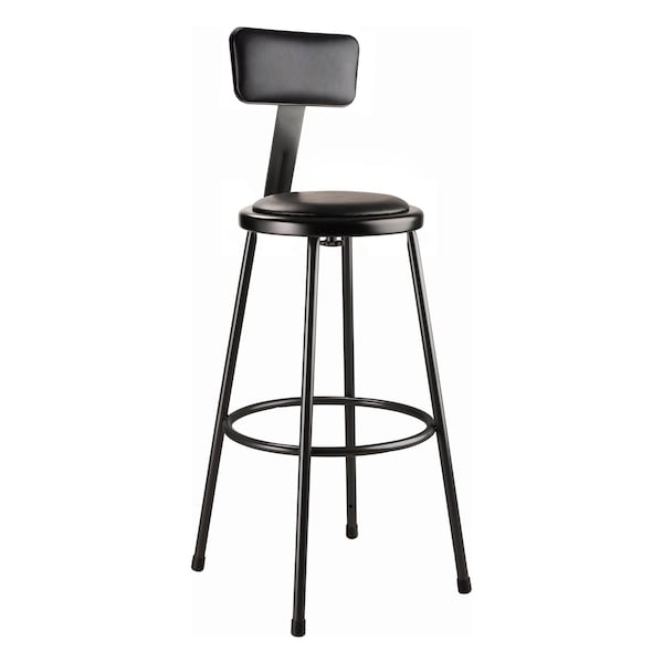 Black Vinyl Stool Back,30 In., Base Design Welded Tube Leg, Mobility Stationary, Backrest Yes, Base Color Black, Built-In Tool Tray No, Includes Footring Yes, Maximum Seat Height 30 in, Minimum Seat Height 30 in, Overall Height 43 in, Seat Adjustment Type Not Applicable, Seat Diameter 14 in, Seat Shape Round, Seat Width 14 in, ESD Conductive Yes, Assembled Unassembled, Footring Diameter 5/8 in, Footring Shape Round, Load Capacity 300 lb, Number of Legs 4, Seat Color Masonite
