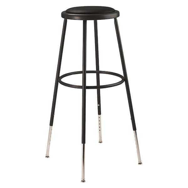 Black Vinyl Stool,31-39 In.H, Base Design Welded Tube Leg, Mobility Stationary, Backrest Not Applicable, Base Color Black, Built-In Tool Tray No, Includes Footring Yes, Maximum Seat Height 38 1/2 in, Minimum Seat Height 30 1/2 in, Overall Height 30 1/2 in, Seat Adjustment Type Screw Post, Seat Diameter 14 in, Seat Shape Round, Seat Width 14 in, ESD Conductive Yes, Assembled Unassembled, Footring Diameter 5/8 in, Footring Shape Round, Load Capacity 300 lb, Maximum Tilting Angle Not Applicable
