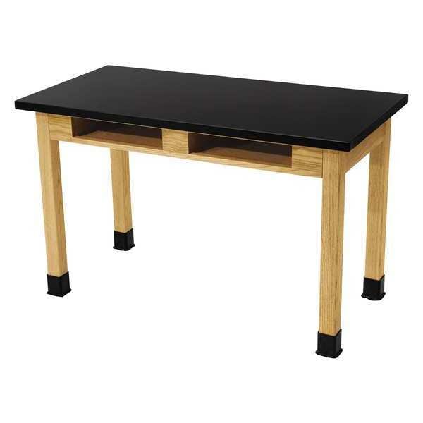 Chemical Resistant Lab Table With Book Compartments, Solid Wood (Legs) Frame, 72" L x 30" W, Black