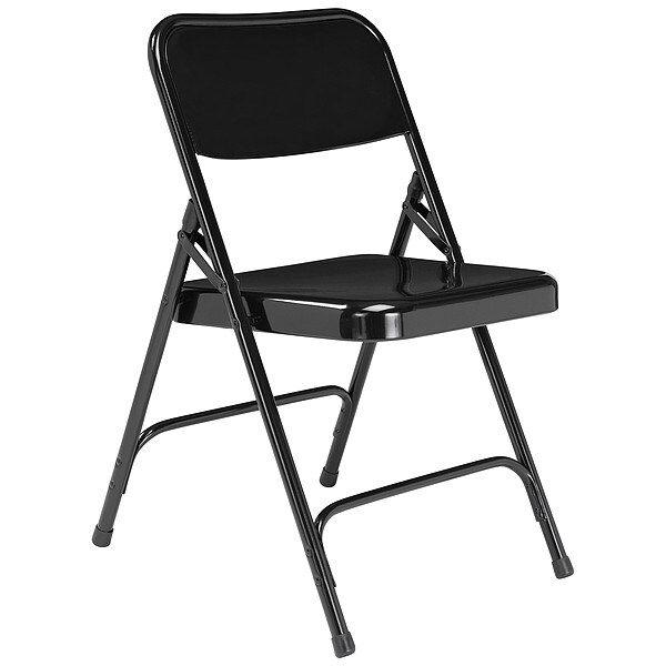 Folding Chair, 200 Series, Overall Height 29 5/8 in, Overall Width 18 3/8 in, Overall Depth 19 1/2 in, Seat Height 17 1/4 in, Seat Width 16 in, Seat Depth 16 in, Back Height 8 1/4 in, Back Width 18 1/4 in, Seat Color Black, Back Color Black, Frame Color Black, Seat Material Steel, Back Material Steel, Frame Material Steel, Assembled, Cushion Thickness Not Padded, Arm Style Armless, Weight Capacity 500 lb, Caster Type Non-Marring Glides, Package Quantity 4