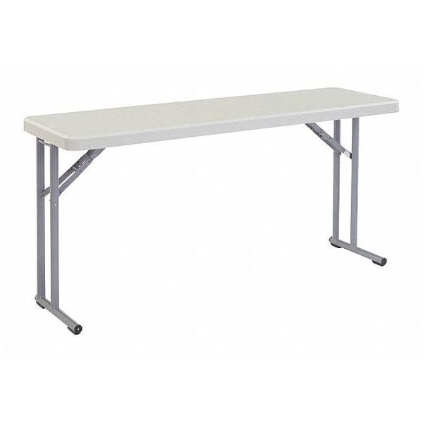 Folding Table, Surface Material Blow Molded Polyethylene, Rectangle, Width 18 in, Length 60 in, Height 30 in, Tabletop Color Family Gray, Tabletop Color Speckled Gray, Frame Color Gray, Assembled/Unassembled Assembled, Frame Material Steel, Edge Color Gray, Edge Type Molded, Leg Type Straight, Table Material Plastic, Top Thickness 2 in, Series BT-1800, Load Rating 700 lb, Standards ANSI, BIFMA
