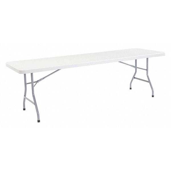 Folding Table, Surface Material Blow Molded Polyethylene, Rectangle, Width 30 in, Length 96 in, Height 30 in, Tabletop Color Family Gray, Tabletop Color Speckled Gray, Frame Color Gray, Assembled/Unassembled Assembled, Frame Material Steel, Edge Color Gray, Edge Type Molded, Leg Type Wishbone, Table Material Blow Molded Polyethylene, Top Thickness 2 in, Series BT-3000, Load Rating 800 lb, Standards ANSI, BIFMA