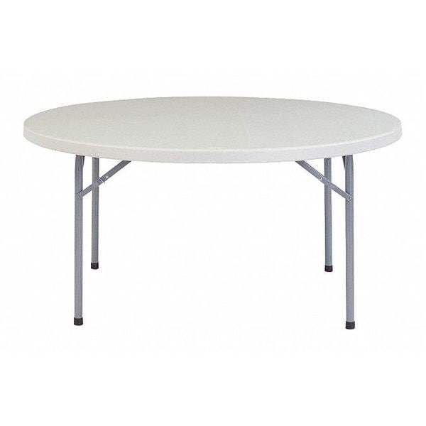Folding Table, Surface Material Blow Molded Polyethylene, Round, Diameter 60 in, Height 30 in, Tabletop Color Family Gray, Tabletop Color Speckled Gray, Frame Color Gray, Assembled/Unassembled Assembled, Frame Material Steel, Edge Color Gray, Edge Type Molded, Leg Type Straight, Table Material Plastic, Top Thickness 2 in, Series BTR, Load Rating 1000 lb, Standards ANSI, BIFMA