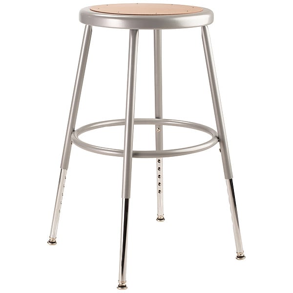 Round Stool, Height Range 19" to 27", Masonite Board Gray