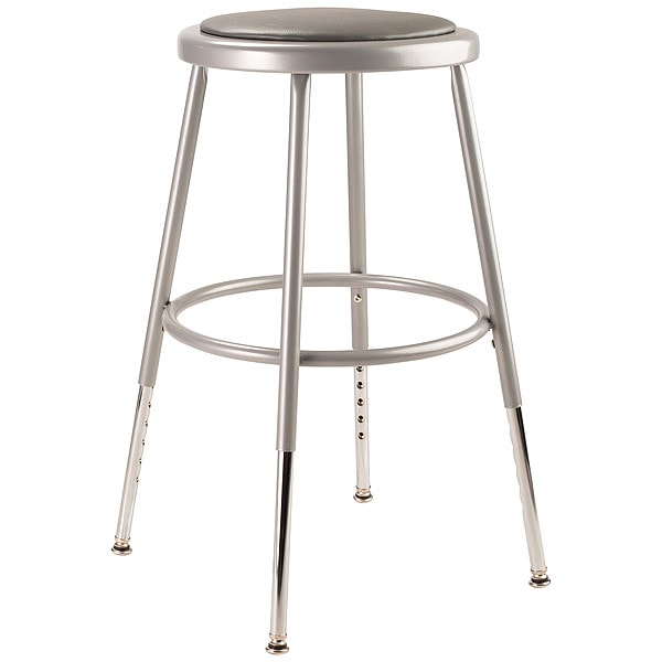 Round Stool, Height Range 19" to 27", Vinyl Gray