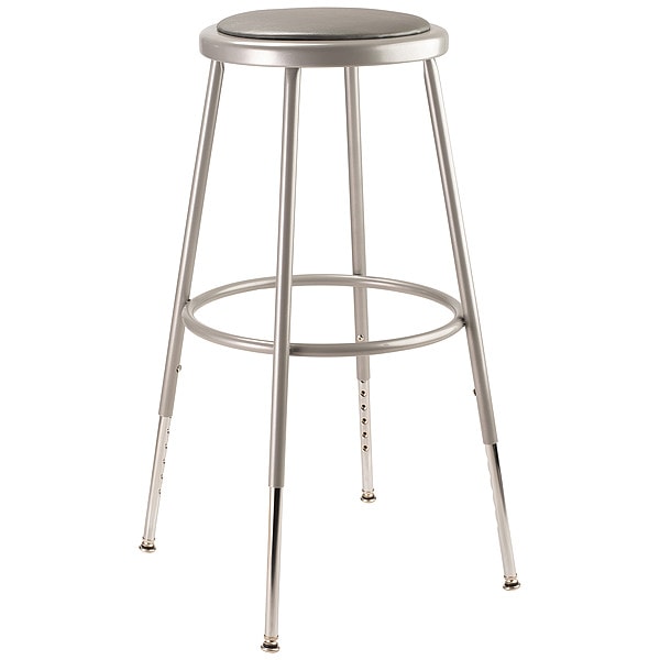 Round Stool, Base Design Adjustable Legs, Mobility Stationary, Backrest No, Base Color Gray, Built-In Tool Tray No, Includes Footring Yes, Maximum Seat Height 33 in, Minimum Seat Height 25 in, Overall Height 25 in, Seat Adjustment Type Drilled Leg Inserts, Seat Diameter 14 in, Seat Shape Round, Seat Width Not Applicable, ESD Conductive No, Assembled Unassembled, Number of Legs 4