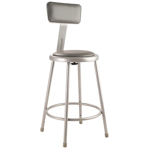 Round Stool, Base Design Welded Tube Leg, Mobility Stationary, Backrest Yes, Base Color Gray, Built-In Tool Tray No, Includes Footring Yes, Maximum Seat Height 24 in, Minimum Seat Height 24 in, Overall Height 37 in, Seat Diameter 14 in, Seat Shape Round, Seat Width Not Applicable, ESD Conductive No, Assembled Unassembled, Number of Legs 4