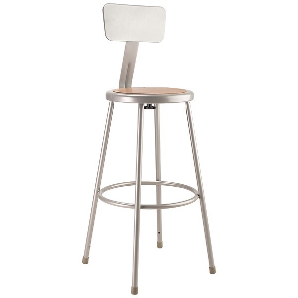 Round Stool, Base Design Welded Tube Leg, Mobility Stationary, Backrest Yes, Base Color Gray, Built-In Tool Tray No, Includes Footring Yes, Maximum Seat Height 30 in, Minimum Seat Height 30 in, Overall Height 43 in, Seat Diameter 14 in, Seat Shape Round, Seat Width Not Applicable, ESD Conductive No, Assembled Unassembled, Number of Legs 4