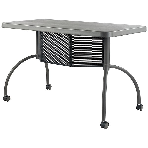Seminar/Training Table, Tabletop Color Charcoal, Frame Color Gray, Frame Material Steel, Edge Color Charcoal Slate, Standards ANSI, BIFMA, Includes (2) Locking & (2) Non-locking Casters, Built-in Perforated Modesty Panel