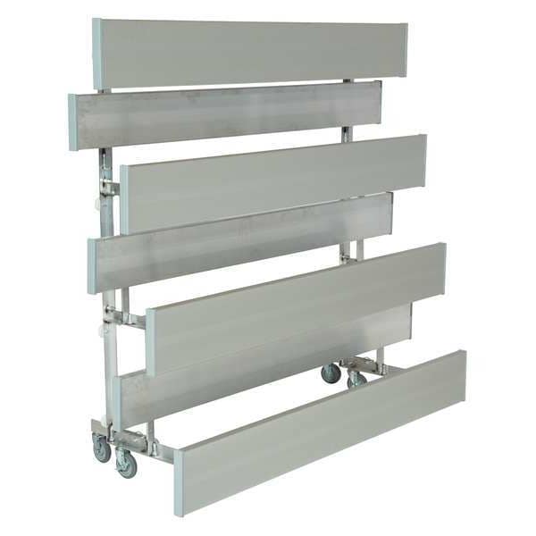 Bleacher, Number of Seats 20, Number of Rows 4, Overall Height 84 7/8 in, Overall Width 90 in, Overall Depth 24 in, Color Silver, Finish Mill Finish, Material Aluminum, Row Rise 6 in, Seat Height 18 in, Assembly Unassembled, Product Type Bleacher