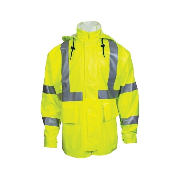 30"LONG 10OZ FR CLS3 JACKET-MD, FLUOR YELLOW PU COATED COTTON (Discontinued)