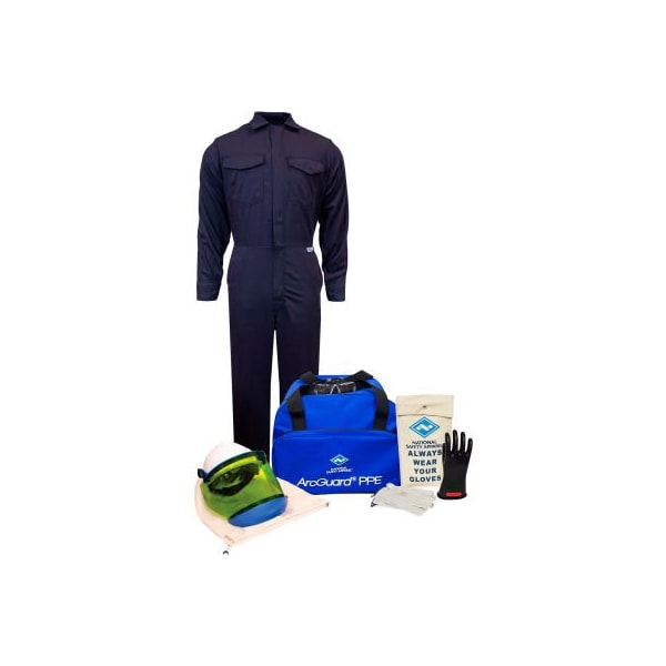 Arcguard kit2cv08md10 8 cal/cm2 arc flash kit with fr coverall, md, glove size 10 includes: 8 cal/cm2 fr coverall made from ultrasoft 11 class 0 rubber voltage insulating gloves 10 leather glove protectors hard hat with arc flash face shield & chin cup safety glasses face shield unit bag glove bag gear bag approvals / standards compliant to astm f1506 for arc flash complies with osha 1910.269 compliant to nfpa 70e for arc flash compliant to csa z462 for arc flash (canada ul certified to nfpa 2112