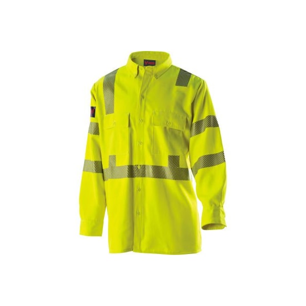 Drifire hi-vis work shirt, type r, class 3, s, fluorescent yellow, df2-ax3-324ls-hy-sm features: inherently flame resistant 3m scotchlite flame resistant silver segmented reflective trim features two chest pockets with button closure quickly identify compliance with exterior labeling odor control technology uses drirelease moisture management technology standards: compliant to astm f1506 for arc flash complies with osha 1910.269 compliant to nfpa 70e for arc flash compliant to csa z462 for arc flash canada meets ansi/isea 107 type r class 3