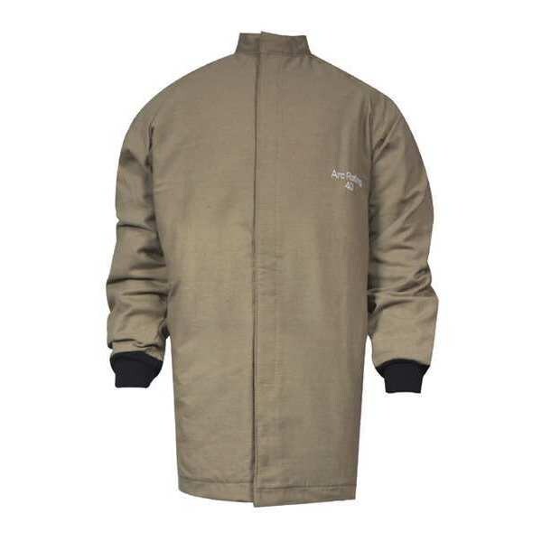 ATPV Rating 40.0 cal/cm2, Color Khaki, Fabric Weight 5.3 oz, Closure Type Hook-and-Loop, Flame Resistant Arc Flash Coat, Length 32 in, Size 2XL, Standards ASTM F1506, OSHA 1910.269, NFPA 70E, CSA Z462