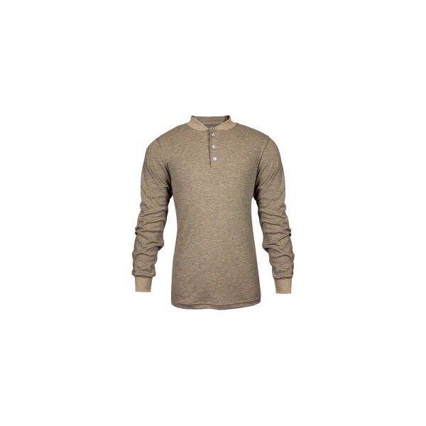 TECGEN CC Flame Resistant Long Sleeve Henley, XL, Tan,