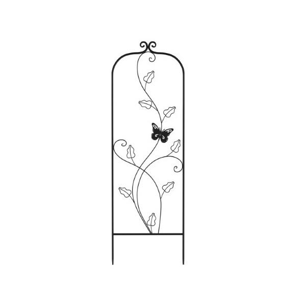 Provide support for your climbing plants while adding style and dimension to your yard with the Garden Trellis by Nature Spring. The decorative panel features a curving leafy vine and butterfly design with a sturdy steel construction that is powder coated for a finish that will stand up to the outdoor elements for years to come. This garden trellis simply stakes into the ground and will add height and variety to your garden borders, patios, fencing, or flower beds. Whether you use this attractive arched trellis for a screen of climbing clematis, behind potted cucumbers on the deck, or outdoor lawn decor amongst ivy, it is sure to increase your home's curb appeal!