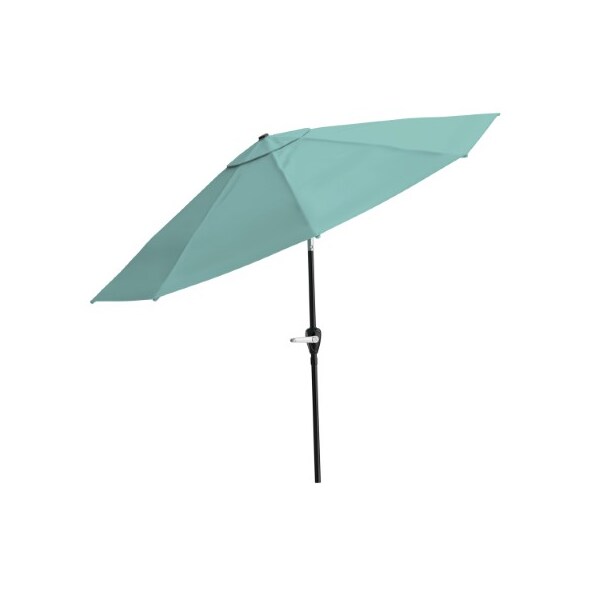 The 10-foot Patio Umbrella from Nature Spring uses a hand crank to easily open its canopy and tilts at a 60-degree angle automatically with a push of a button to shade your outdoor area at any part of the day. The resilient dusty green polyester fabric of the umbrella has built-in vents and is supported with 8 steel ribs so you can use it on your back deck, patio, poolside, or with an outdoor dining set in the backyard. The 1.5-inch diameter powder-coated aluminum pole is rust-resistant to help keep this attractive umbrella looking new and your guests cool and protected from the sun's harsh UV ray's year-after-year!