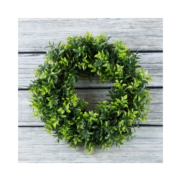 The 11.5-inch diameter Artificial Opal Basil Leaf Wreath from Nature Spring is full of UV resistant lush greenery for use all year around indoors or outdoors. This hassle-free wreath can hang on the front of a door, over the mantle, or on any wall, and it can be decorated to create a striking accent piece in any home or office setting.