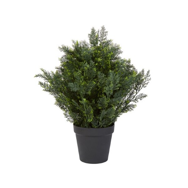 The 26-Inch Artificial Cedar Potted Topiary from Nature Spring will add a splash of color to your home with its UV resistant lush greenery that can be used indoors or outdoors. This hassle-free faux shrub has a natural looking trunk and is potted in a 9-inch diameter container that can be placed in your own planter to create a striking accent piece in any home or office setting.