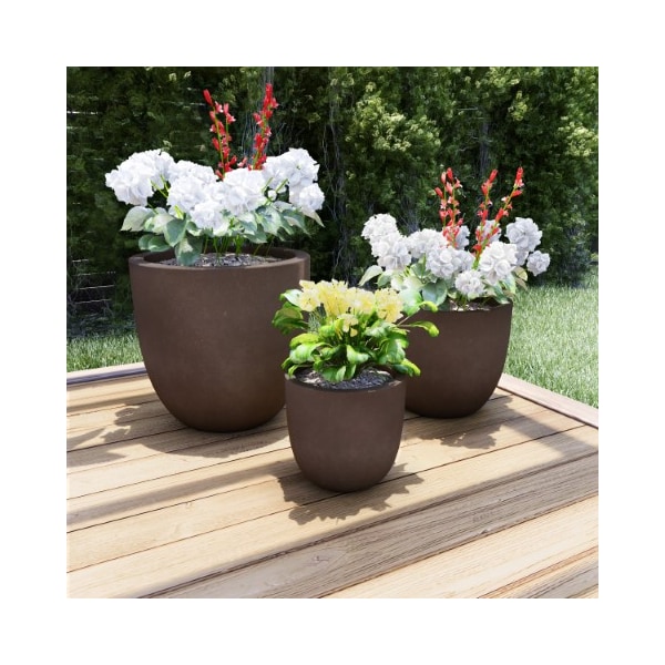 Showcase your beautiful plants or flowers in the Nature Spring Clay Planters! This 3-piece set of planters comes in a variety of sizes and has a beautiful antique brown finish that is sure to enhance any outdoor area. Constructed from fiber clay, these pots are both durable and lightweight, while the holes in the bottom help to ensure proper drainage for your plants. These planters will make a lovely addition to your porch, patio, or deck!