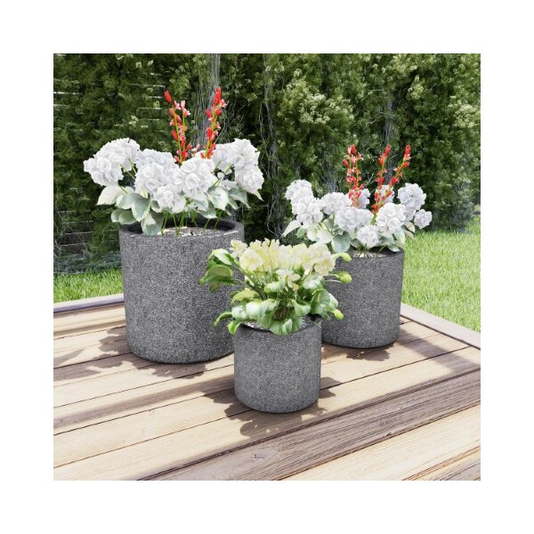 Showcase your beautiful plants or flowers in the Nature Spring Clay Planters! This 3-piece set of planters comes in a variety of sizes and has a beautiful marbled gray finish that is sure to enhance any outdoor area. Constructed from fiber clay, these pots are both durable and lightweight, while the holes in the bottom help to ensure proper drainage for your plants. These planters will make a lovely addition to your porch, patio, or deck!