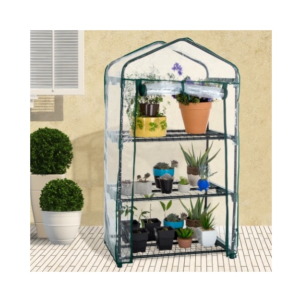 The 3-Tier Mini Greenhouse by Nature Spring is an excellent solution for cultivating herbs and flowers in all seasons. Conveniently portable, this gardening rack can easily be moved indoors or outdoors as needed, while the clear PVC cover helps to create an ideal growing environment. The 3 tiers of sturdy shelves are ideal for holding all your plants, seedlings, and gardening supplies!
