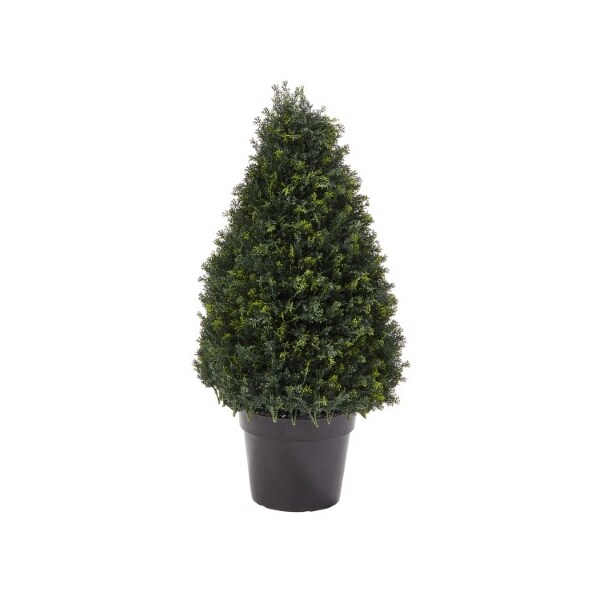 The 37-Inch Artificial Tower Cypress Topiary from Nature Spring will add a splash of color to your home with its UV resistant lush greenery that can be used indoors or outdoors. This hassle-free faux shrub has a natural looking trunk and is potted in a 10-inch diameter container that can be placed in your own planter to create a striking accent piece in any home or office setting.