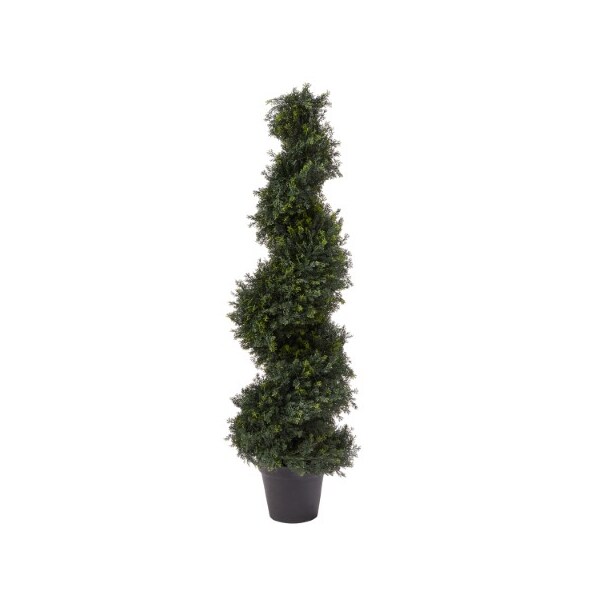 The 48-Inch Artificial Spiral Cypress Topiary from Nature Spring will add a splash of color to your home with its UV resistant lush greenery that can be used indoors or outdoors. This hassle-free faux shrub has a natural looking trunk and is potted in an 9-inch diameter container that can be placed in your own planter to create a striking accent piece in any home or office setting.