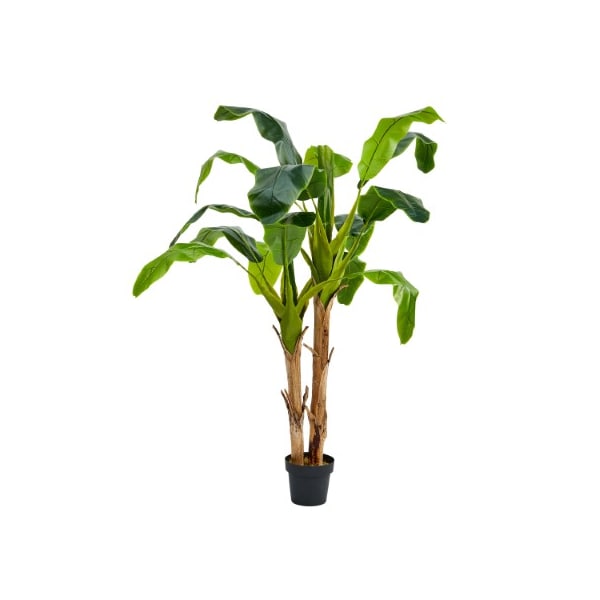 The 72-Inch Artificial Banana Leaf Tree from Nature Spring will add a splash of color to your home with its lush greenery. This hassle-free faux tree has natural looking double trunks and is potted in an 8-inch diameter container that can be placed in your own planter to create a striking accent piece in any home or office setting.