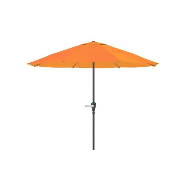 The 9-Foot Patio Umbrella from Nature Spring uses a hand crank to easily open to shade your outdoor area at any part of the day. The resilient terracotta orange polyester fabric of the umbrella has built-in vents and is supported with 8 steel ribs so you can use it on your back deck, patio, poolside, or with an outdoor dining set in the backyard. The 1.5-inch diameter powder-coated aluminum pole is rust-resistant to help keep this attractive umbrella looking new and your guests cool and protected from the sun's harsh UV ray's year-after-year!