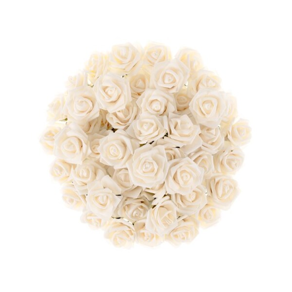 Add a touch of elegance to any area of the home with the Faux Rose Bundle by Nature Spring. This versatile 50-piece set of artificial roses can be utilized for flower arrangements, bouquets, centerpieces, and more. Constructed from latex foam, the roses are soft, durable, and realistic looking, while the cream color is sure to complement any decor or color palette.