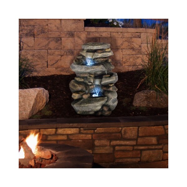 The Cascade Waterfall Fountain by Nature Spring is sure to add a touch of natural beauty and relaxation to any outdoor space. Equipped with LED lights, this fountain will cast an ambient glow as the water flows down the 3 tiers of stones. Constructed from durable and weatherproof Polyresin, this fountain is ideal for your porch, patio, garden, or deck.