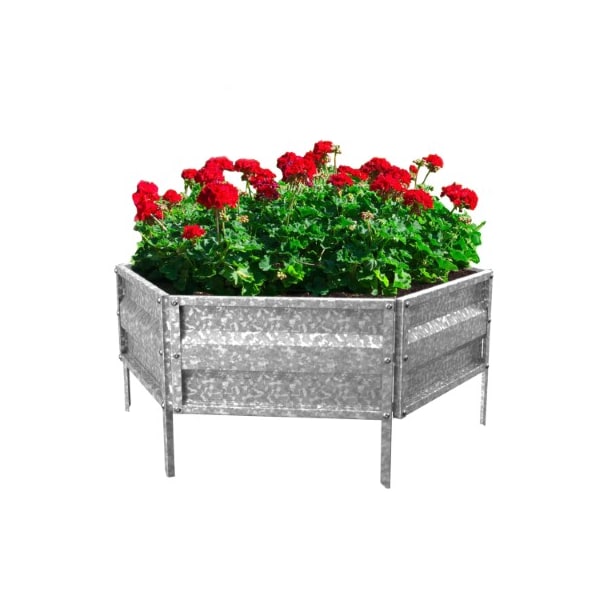 The Raised Garden and Flower Bed Kit from Nature Spring can be staked into the ground for an instant raised planter box for growing flowers, herbs, vegetables, fruits, and annuals. This bottomless 6-sided structure is made of durable galvanized iron sheet metal that can be filled with soil and promotes root development to grow healthy plants in any climate. This versatile planter box can be moved or removed during winter and is great for urban, rooftop, and backyard gardens