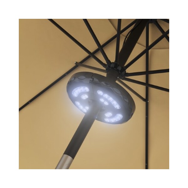 The Rechargeable LED Patio Umbrella Light from Nature Spring is the perfect accessory for all nighttime outdoor events including BBQs, pool parties, and more! This clamp-on fixture features 28 white LED lights with 3 levels of brightness so it will easily light up the area under and around your patio umbrella. No tools are needed for installation, simply install rechargeable 4AA batteries (not included) separate the two halves of the unit, place it up on an umbrella pole with a diameter of 1.18-2.04-inches, and recharge the batteries with the included USB cord as needed.