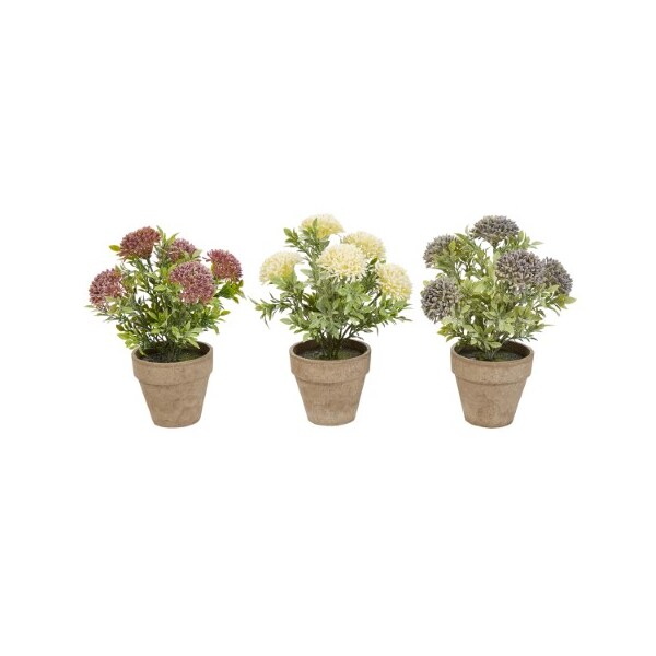 The 3-Piece Set of Potted Flowers from Nature Spring make a charming accent in any room. These hassle-free faux plants have natural looking greenery and flowers that will add visual interest to your home or office. Set in paper fiber pots with a clay colored finish, this set of artificial flowers are sure to complement any home decor.