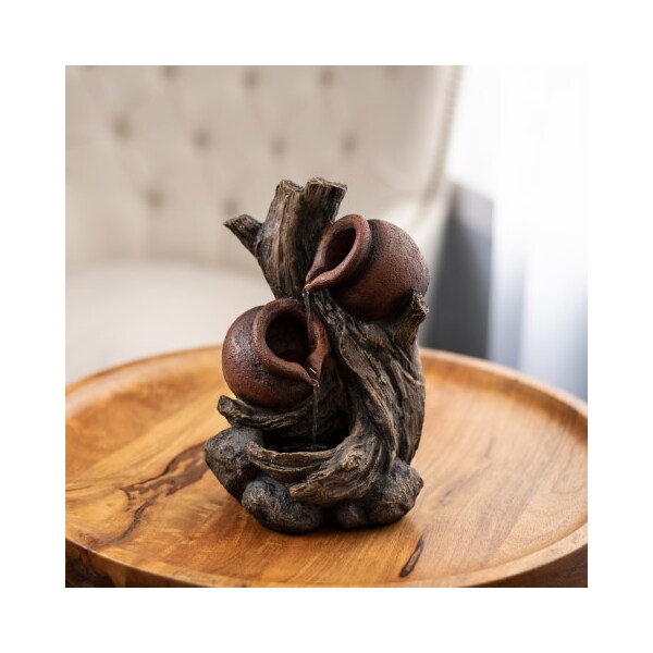 Create relaxing ambience in any room with the Nature Spring Tree Trunk Fountain! This contemporary fountain features water that cascades down the two clay pots that are entwined with the tree trunk. Between the nature-inspired look and soothing water sounds, this lovely decor piece is sure to add a touch of serenity to your living room, bedroom, or office!