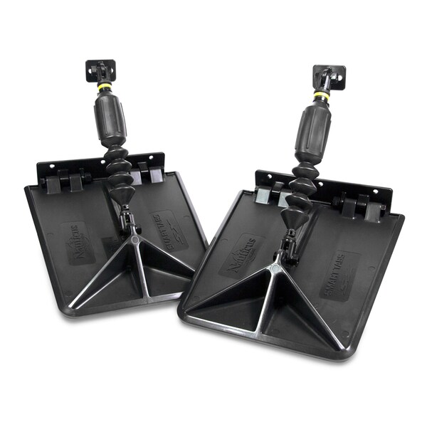 Smart Tabs SX Series 10.5 X 12 f/21-25 Boats - Up To 250 HP. IMPROVES YOUR BOAT S OVERALL PERFORMANCE - GUARANTEED!!!. If these trim tabs don t provide you with an outstanding performance increase, contact us within 30 days of your purchase.. Why buy a manually adjusting trim tab set when you can get the automatic trim tabs that will self adjust and performance better for less money?. The SX series incorporates all of the fully automatic features of our popular SMART TABS, in addition to the rust and corrosion free benefits of molded composite materials. Assembly can be completed in seconds and the installation in a few minutes. The only tools required are a drill with a 3/16 bit and a phillips screw driver. SMART TABS SX provide un-equaled performance and durability with no maintenance in fresh or salt water. The system can be specifically tuned to maximize the performance of any power boat, and TRACKING RIBS have been added to improve handling at higher speeds.. Our breakthrough technology in trim tabs is completely automatic requiring no operator adjustment while underway. Nauticus trim tabs self adjust according to how you load and maneuver your boat.. The nitrogen Gas Actuator provides LIFT at the stern of the boat by holding the trim plate down during acceleration. The amount of LIFT is determined by the actuator load rating and the trim plate adjustment, which is done at the time of installation.. Reduce the minimum planning speed by up to 33%. Faster Acceleration. Increase top speed. Provide a level, more comfortable ride at lower speeds. Improve fuel economy, handling and safety NO HYDRAULICS - NO ELECTRIC SWITCHES. Nauticus trim tabs are completely automatic requiring no operator adjustment while underway.. The nitrogen Gas Actuator provides LIFT at the stern of the boat by holding the trim plate down during acceleration. The amount of LIFT is determined by the actuator load rating and the trim plate adjustment, which is done at the time of installation. (see installation instruction).. SPEED REGULATION. Nauticus trim tabs start in a downward angel to maximize lift at slow speeds. As the boat accelerates, the water pushes up on the trim plates providing lift to the stern which minimizes bow rise, and allows the boat to plane quickly.. Once the water pressure exceeds the actuator load rating (maximum lift) the trim plates move up to a horizontal position eliminating any drag.. BOAT STABILIZERS